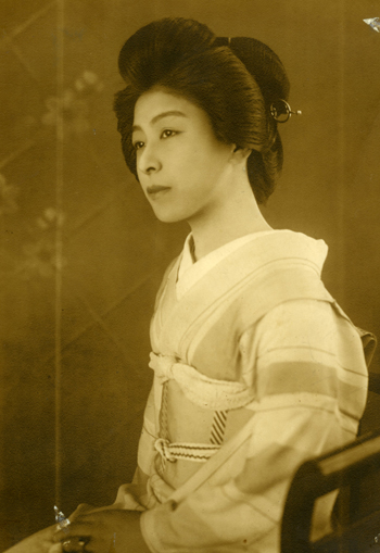 みな子姐さんが左褄をとっている。「芸は売っても身体は売らない」という意味の身体表現である。反対に花魁は右褄をとっていた。 16歳の夏。半玉最後の年。年末に、一本(芸者)になった。 ※半玉:芸者の見習い。お酌さんともいう。玉代(代金)が芸者の半分だったため。これは関東での呼び方で、京都では舞妓という。